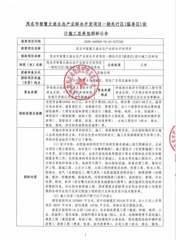 先行区投资1.66亿元!广东华南野生动物园项目招标。
