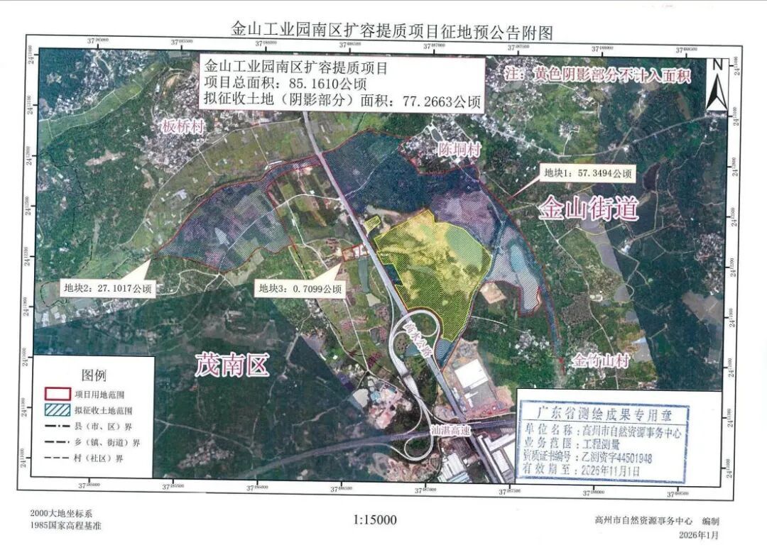拟征地1159亩!高州金山工业园继续扩容。