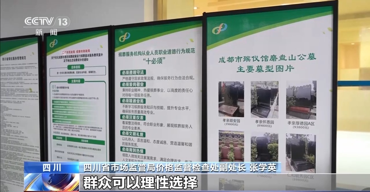 四川省市场监管局价格监督检查处副处长 张学英:群众通过官网就可以清晰查阅全省各类殡仪服务项目、名称、收费标准、减免政策,殡葬用品的规格、材质,公共墓穴的位置、面积等详情也一目了然,部分还配有实景照片。群众可以理性选择,降低选择成本。