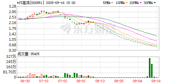*ST高鸿(维权)9月16日大宗交易平台共发生5笔成交,合计成交量229.10万股,成交金额130.59万元。成交价格均为0.57元。