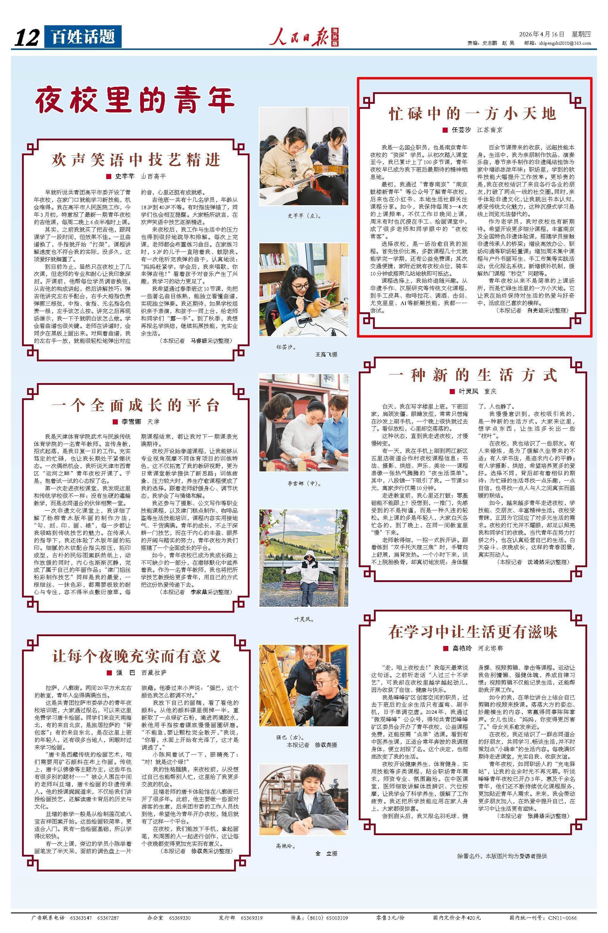 4月16日,《人民日报海外版》第12版版面。